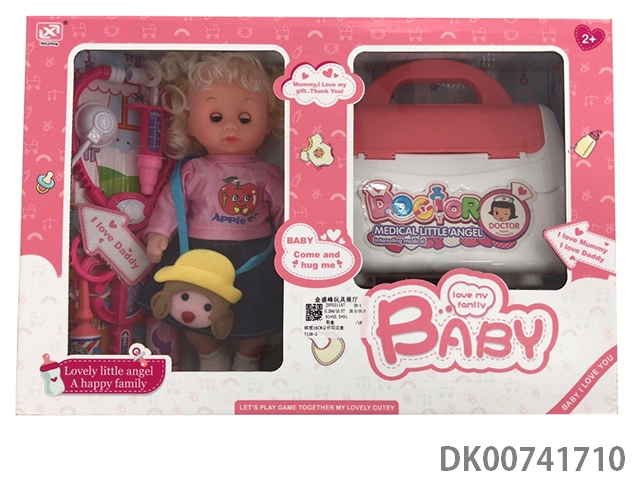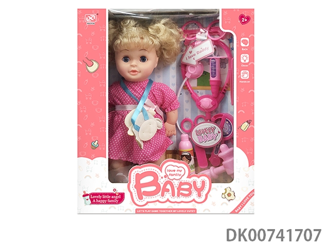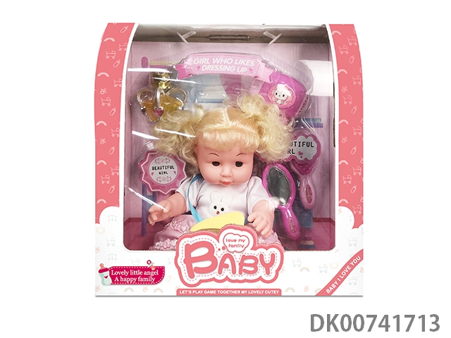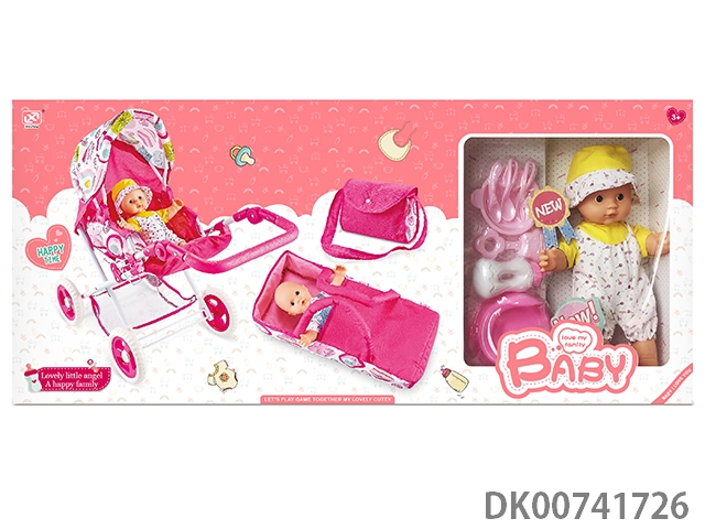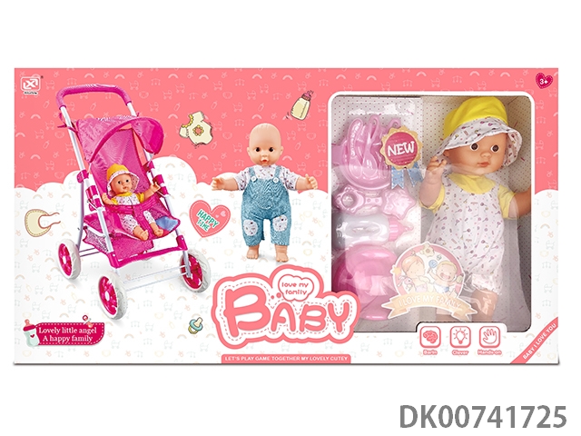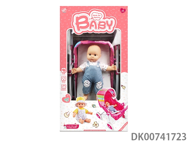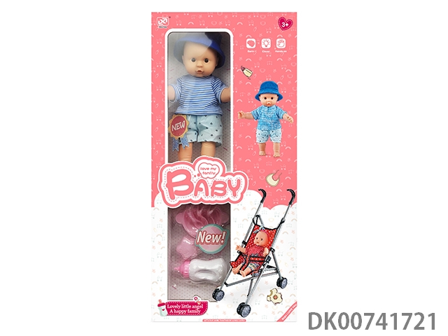12寸棉身搪胶公仔+婴儿配件+收纳手推车