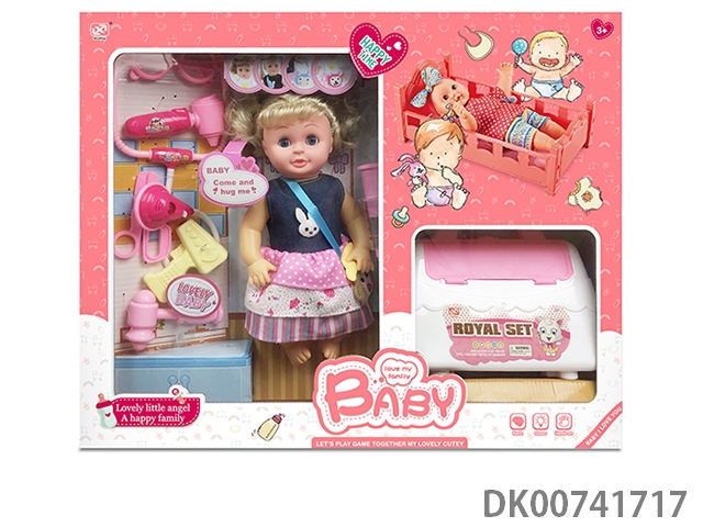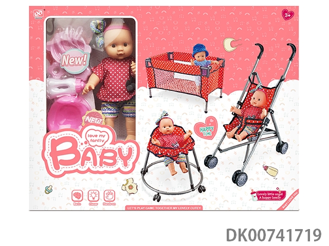 12寸棉身搪胶公仔+婴儿配件+收纳手推车+学步车+睡床