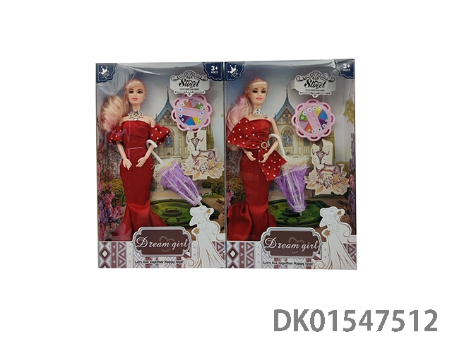 11寸实身9关节晚礼服+蕾丝伞+化妆盘2款混装