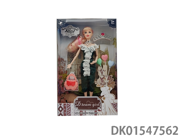 11寸实身9关节晚礼服+包包+皇冠+气球