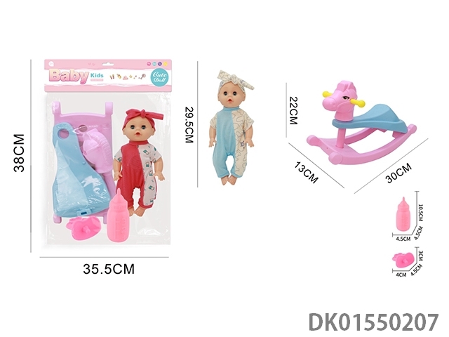 29.5cm活眼男娃娃骑木马,喝水尿尿带4声IC(包3粒AG13)