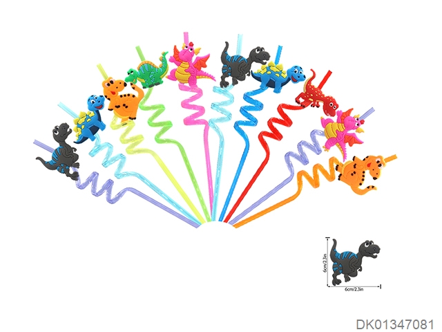 螺旋三圈卡通恐龙吸管(8只装)