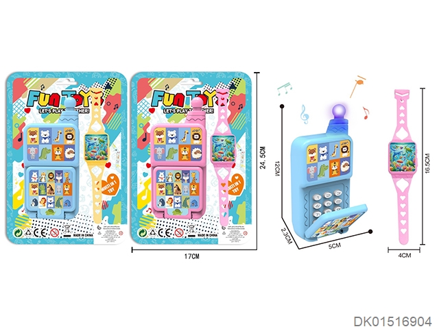 儿童益智灯光音乐拉布小手机+手表