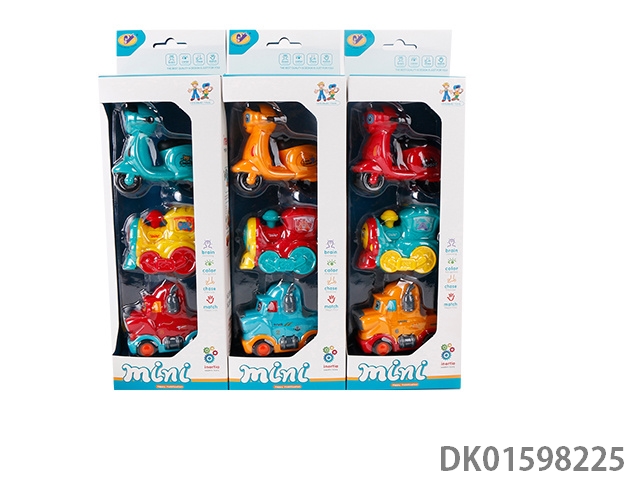 卡通惯性女庄摩托车,电钻工程车,推土工程车3款混装