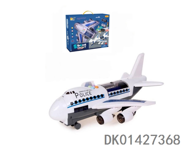 收纳惯性飞机运输机带彩色灯光和仿真音效-警察(配2只警察合金车+11路障)
