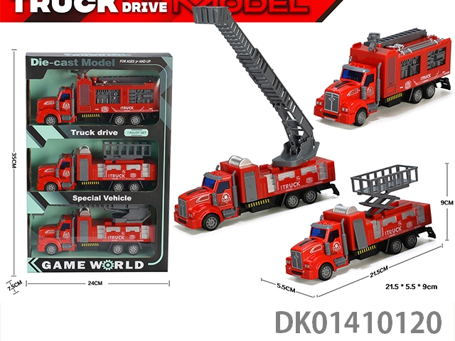长头合金回力消防车【3只套装】