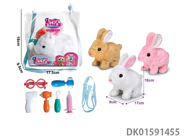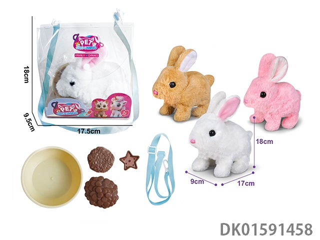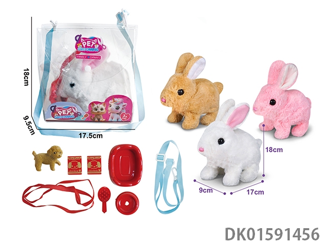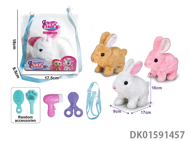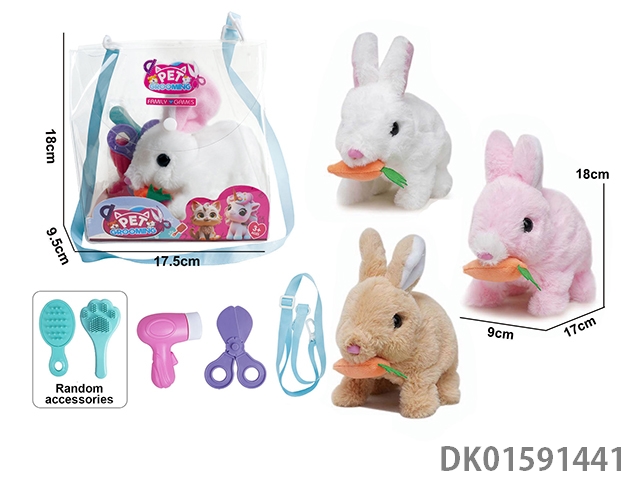 电动毛绒走路纯色兔+小配件3