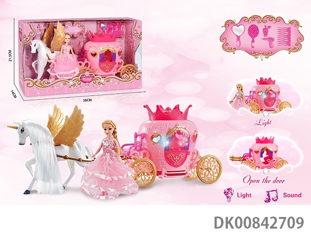 静态彩发马梦幻车带公主(粉)