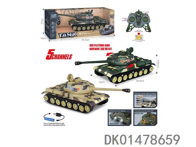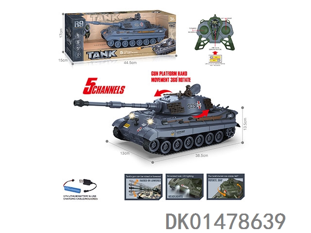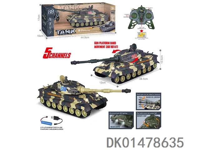 27MHz 五通带灯光、声音、一键演示遥控坦克(包电)