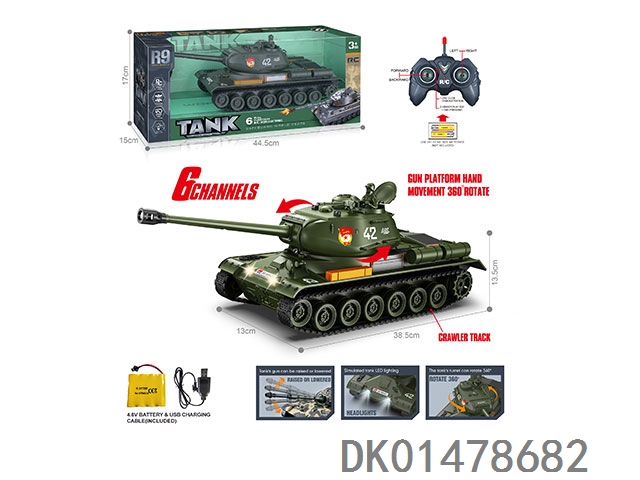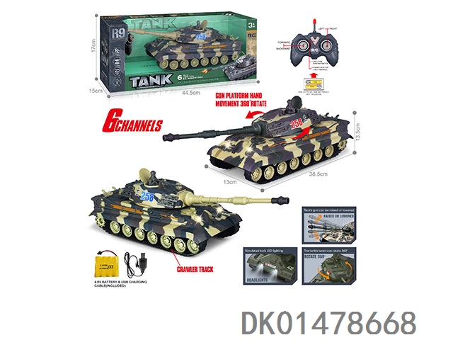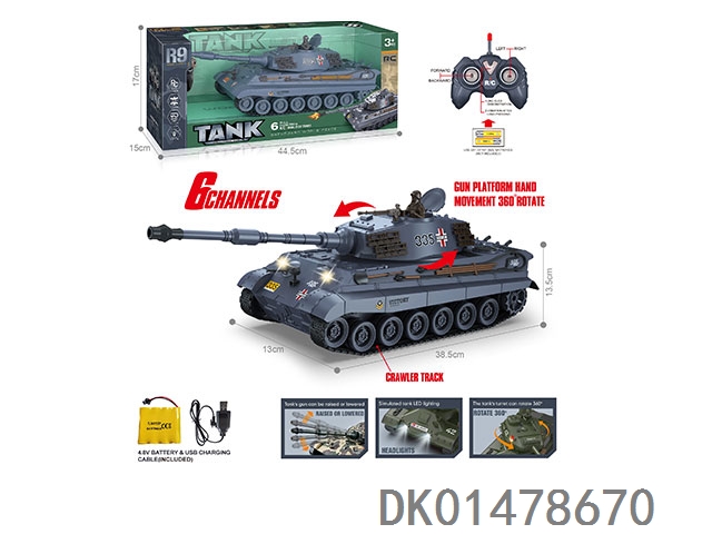 27MHz 六通带灯光声音、一键振动、一键演示遥控履带坦克(包电)
