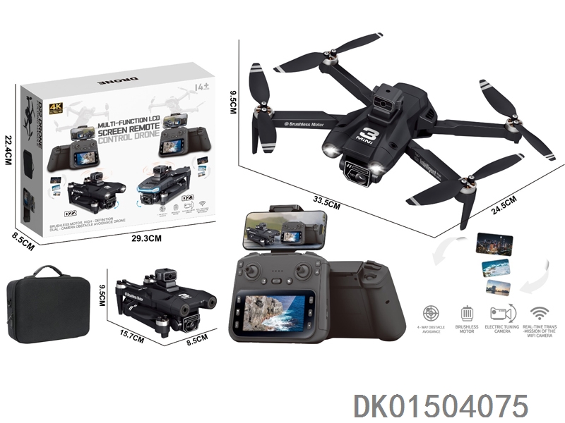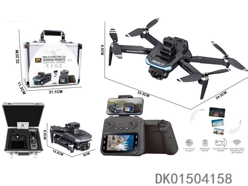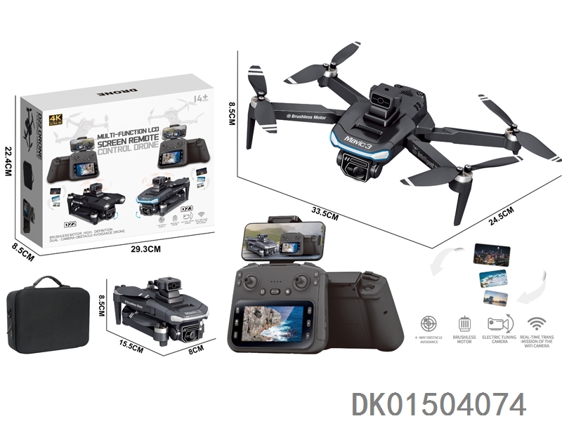 4.3寸屏控 (WiFi实时传输) 无刷电机无人机 WiFi高清4K双摄像头 180擔 带光流跟随 电调摄像头 4面避障