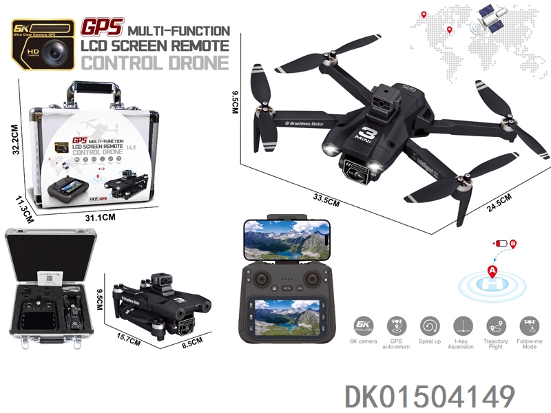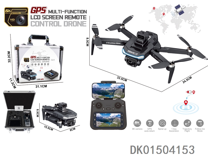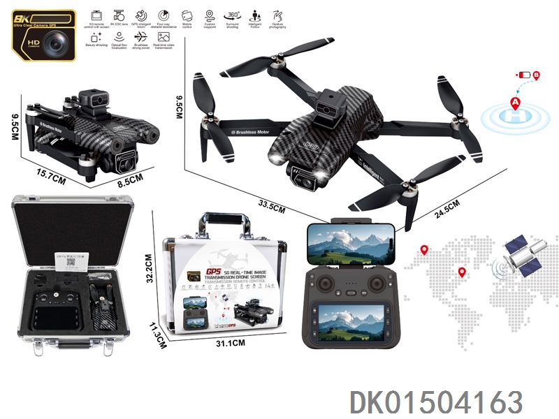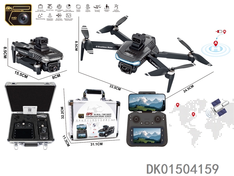 GPS 5G传输中继器 4.3寸屏控(WiFi实时传输)无刷电机无人机WiFi高清8K双摄像头带光流跟随电调摄像头4面避障