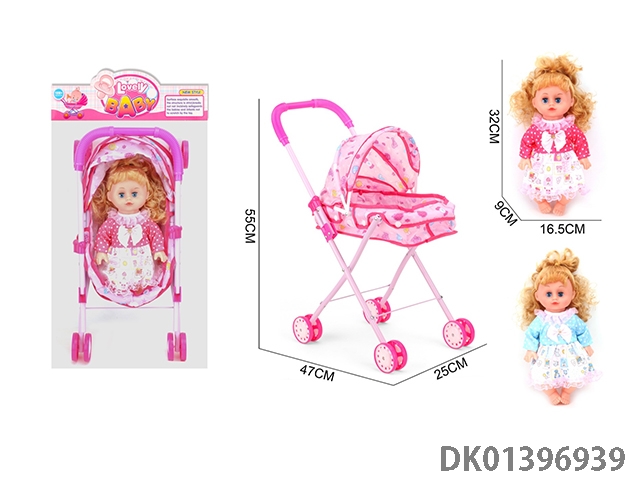 16寸铁制婴儿推车配活眼空心女娃带IC