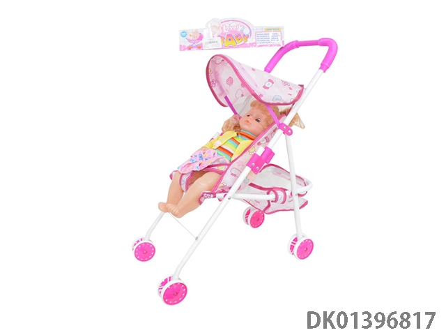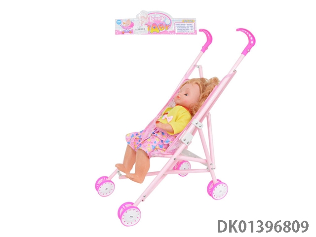 16寸铁制婴儿推车配活眼空心娃娃带IC