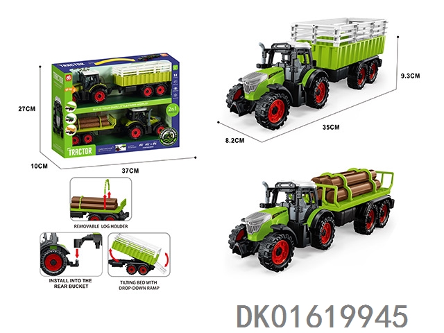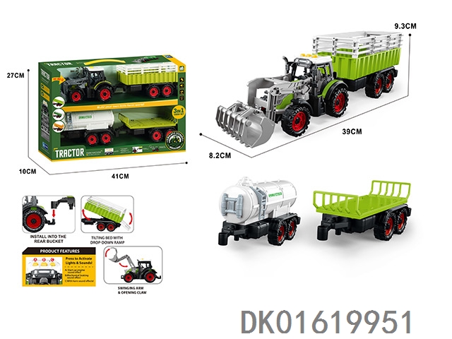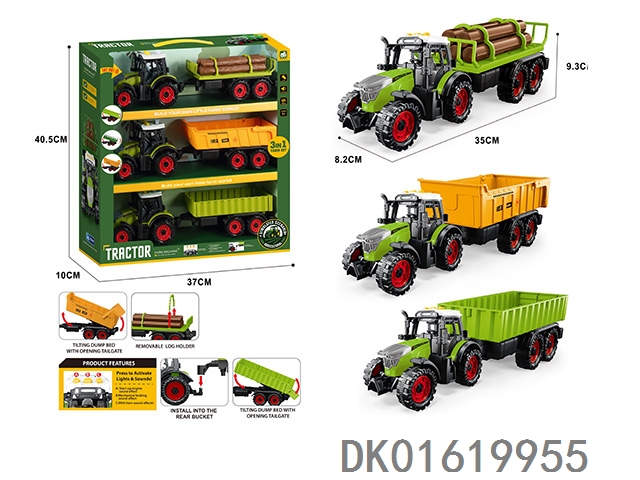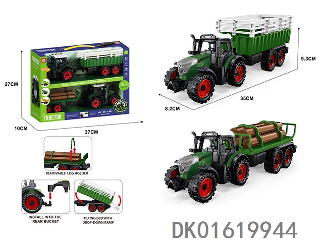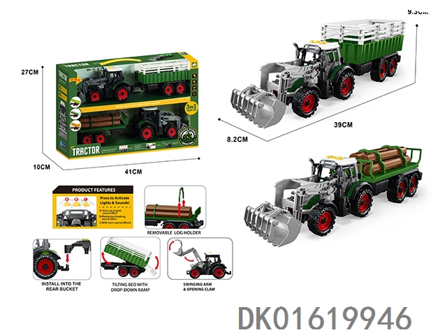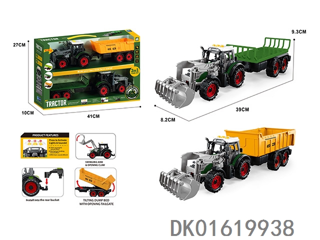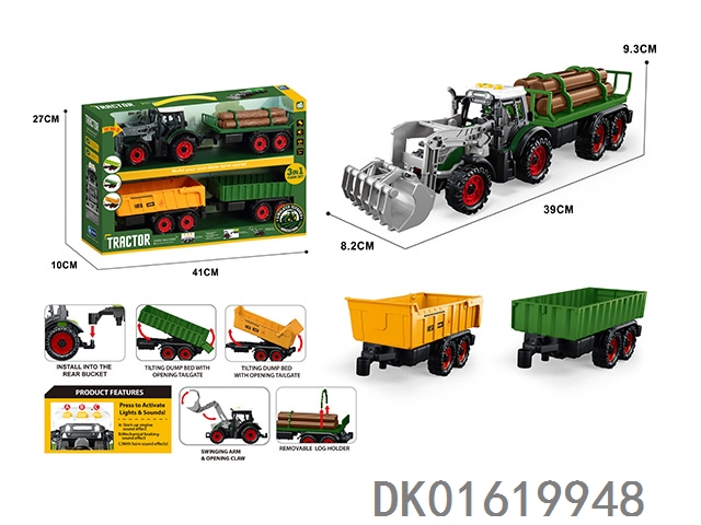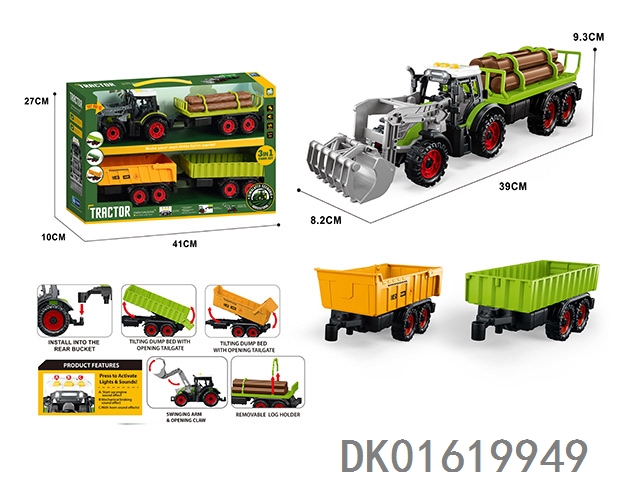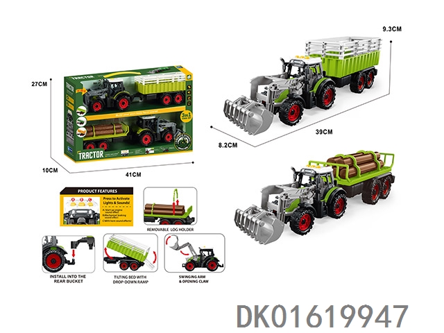 灯光音效,惯性带夹农夫车头+朩条拖板后斗+自卸后斗+方斗后斗