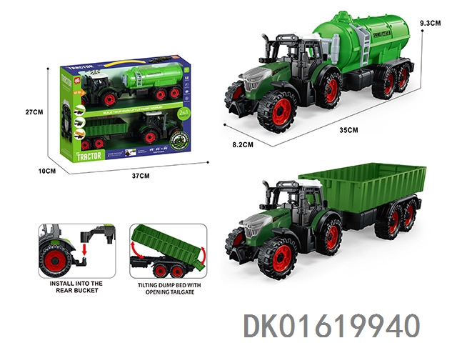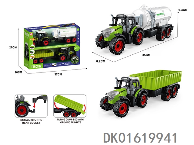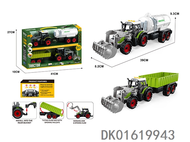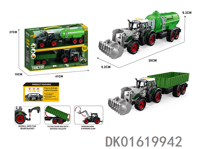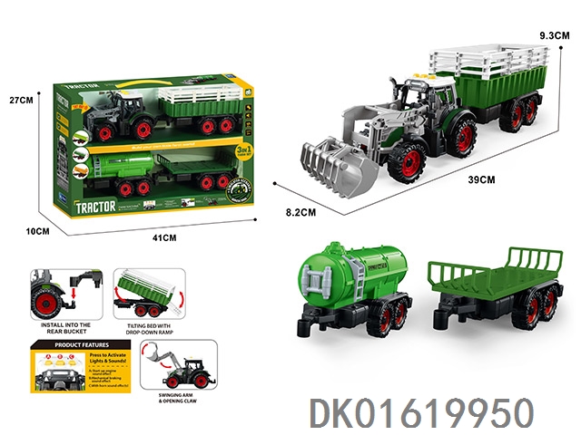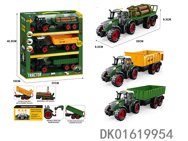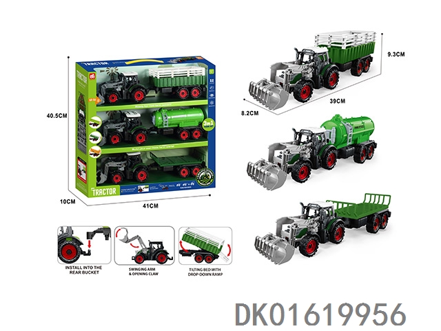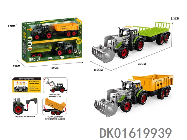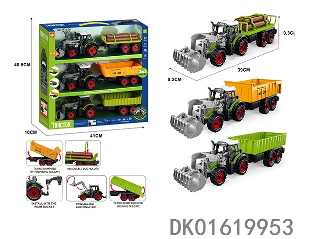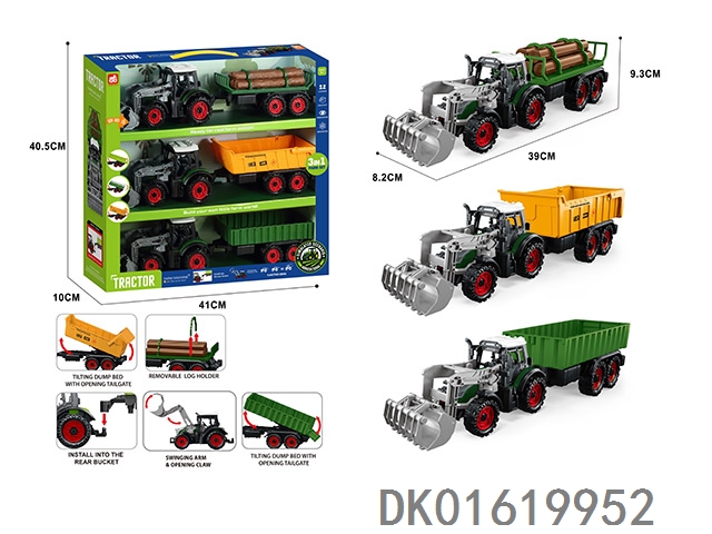3个惯性带夹农夫车头+朩条拖板后斗+自卸后斗+方斗后斗