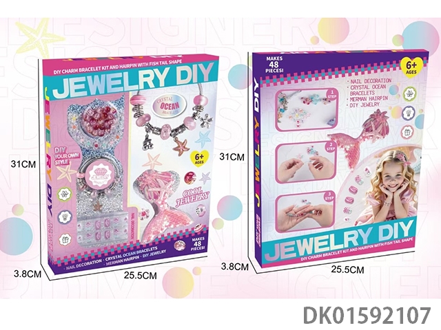 粉色主题3合1潘多拉串珠(指甲 发夹 手链)