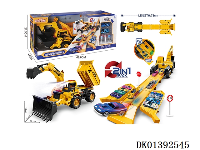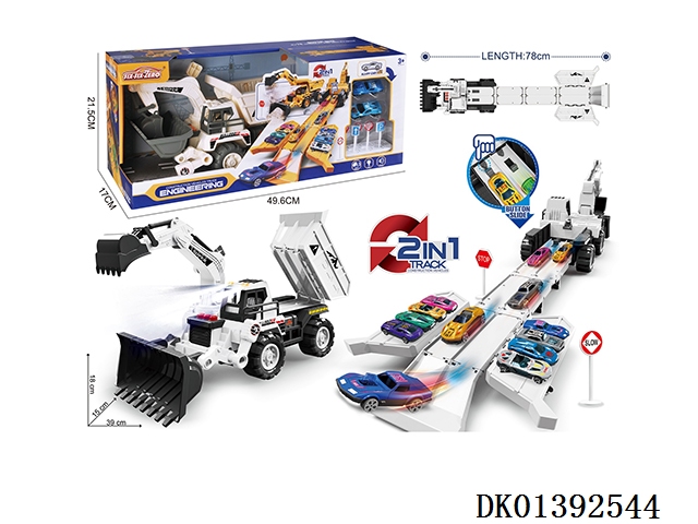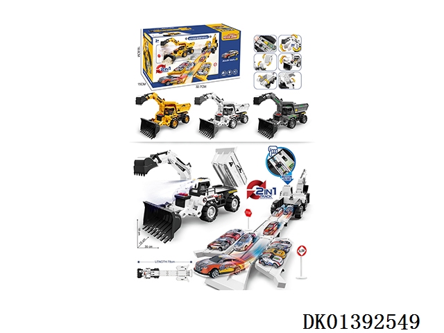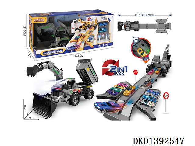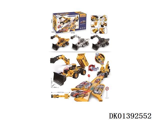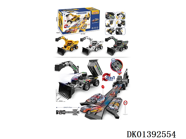 灯光+音乐 合金变形收纳弹射工程车(配合金车2只、路标7)(3粒AG13纽扣电池---包含)