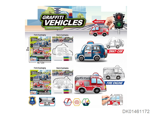 惯性充气涂鸦特警车消防车配管