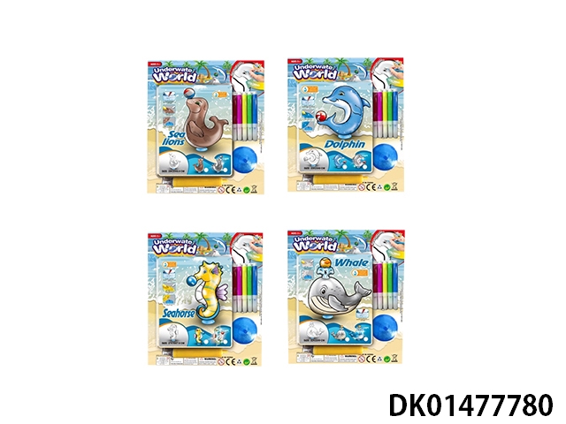 手绘涂鸦充气海洋动物站底配气筒