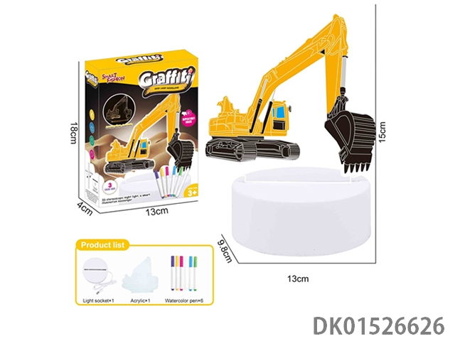 DIY彩绘小夜灯(挖掘机,6只水彩笔)