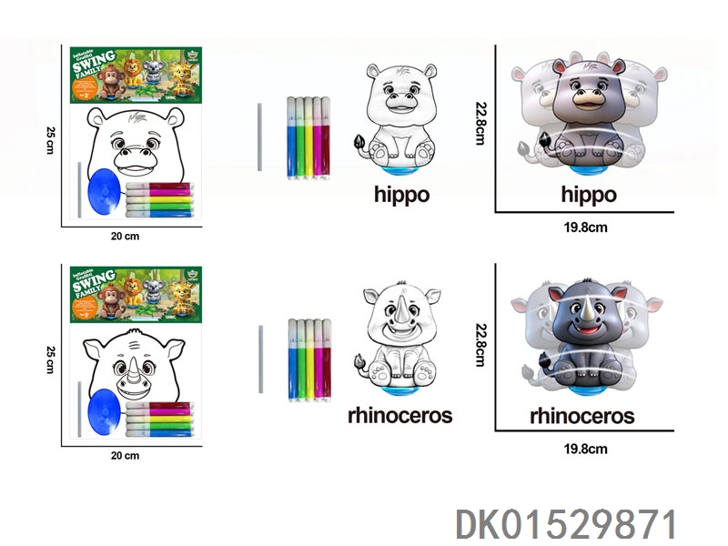 摇摆充气涂鸦充气河马犀牛配管