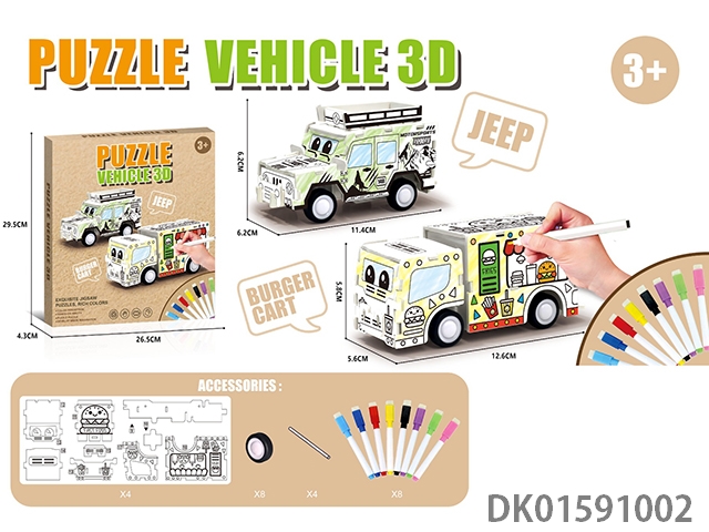 3D越野车+快餐车+8色笔涂色