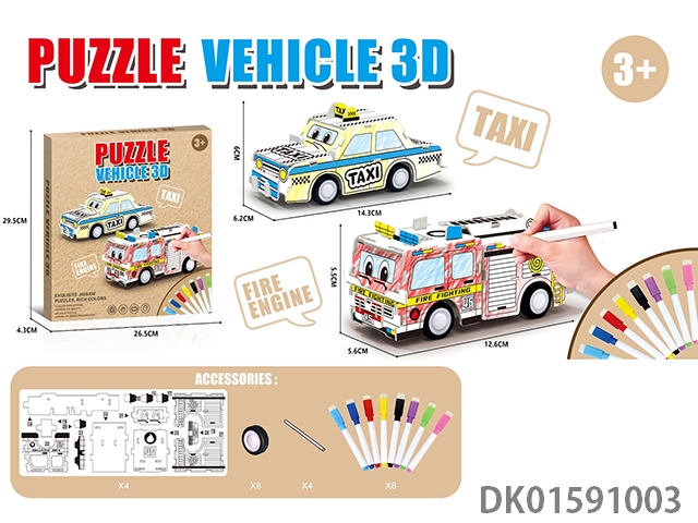 3D的士车+消防车+8色笔涂色