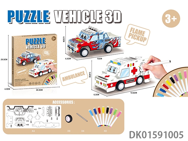 3D皮卡车+医护车+8色笔涂色