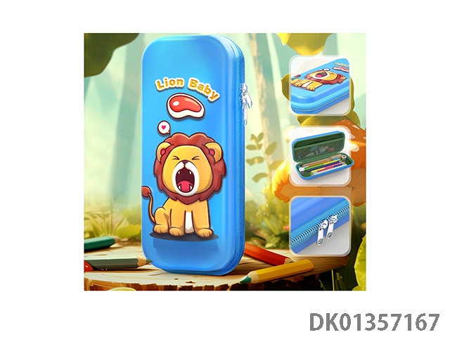 小狮子3D凹凸皮革小笔盒(蓝色)