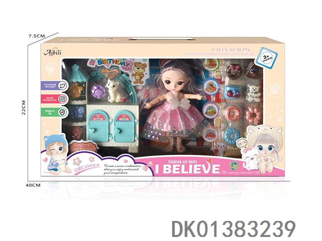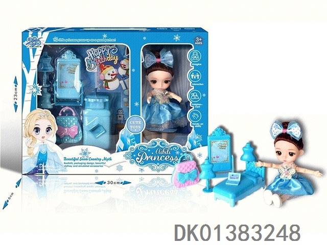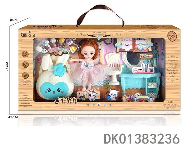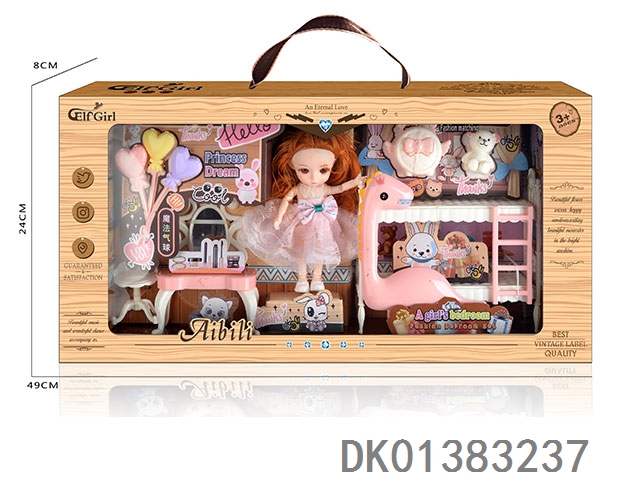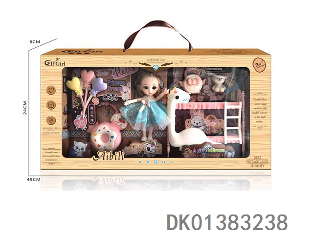 6寸时尚小萌娃场景套装带睡床梳妆台 13关节环保娃娃
