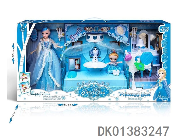 11寸小公主+6寸小娃娃 时尚睡床 场景 床带灯光音乐 包电AG13纽扣电池(CPC)