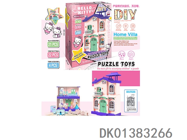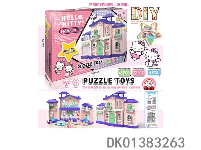 DIY HELLOKITTLE别墅过家家套装/带灯光音乐/配公仔/无包电
