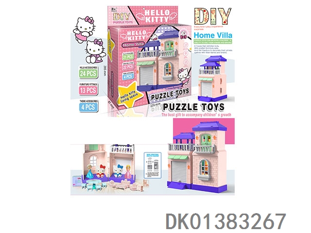 DIY HELLOKITTLE别墅过家家套装/无灯光音乐/配公仔/无包电