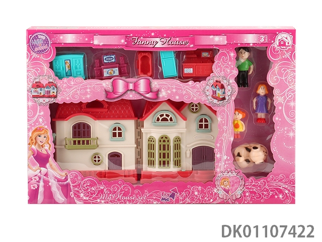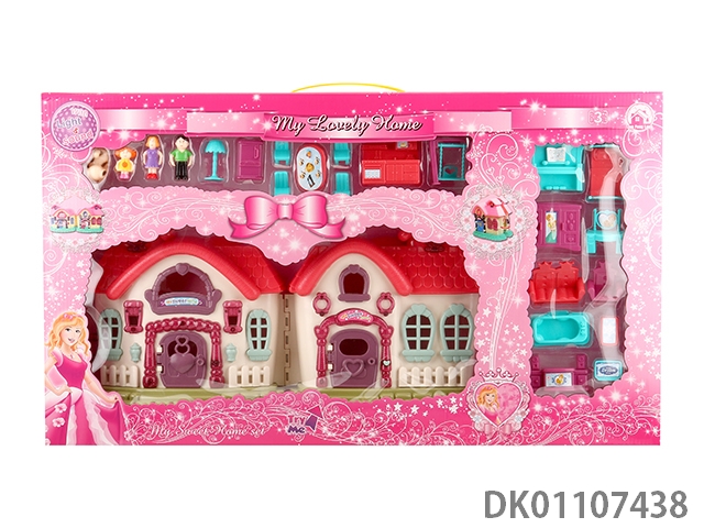 7彩灯光别墅带12首音乐(包2颗AA电池)+人物全套家具