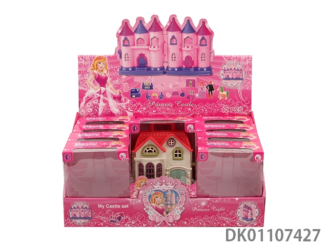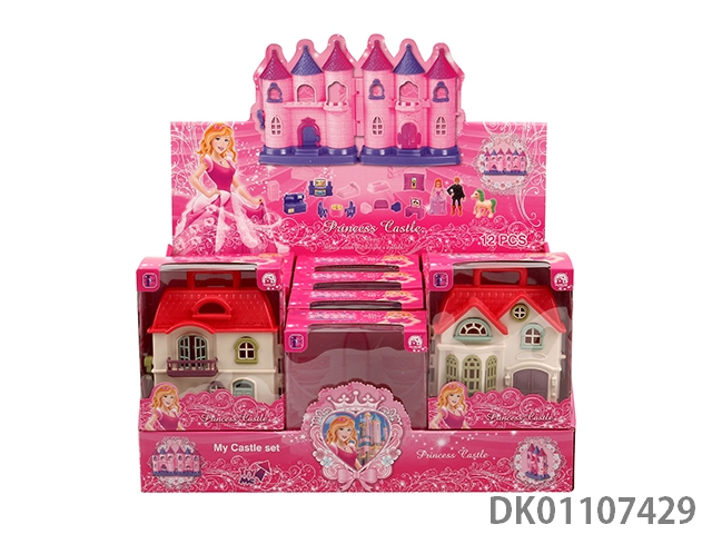 1边7彩灯光城堡带12首音乐(2款混装,包3颗AG13电池)+家具/公主/王子/马