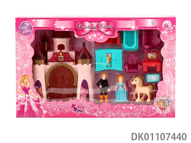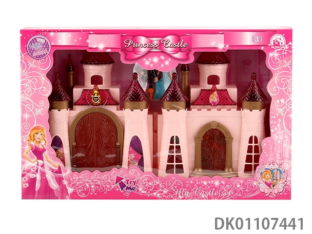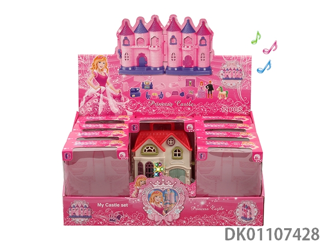 7彩灯光城堡带12首音乐(包3颗AG13电池)+家具/公主/王子/马