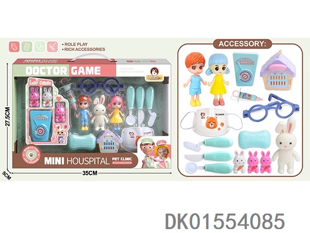 粉色宠物小诊所小兔套装15PCS(无功能)