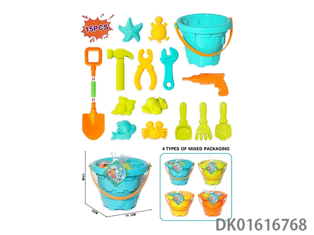 沙滩海底动物沙模工具城堡桶15件套
