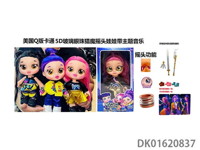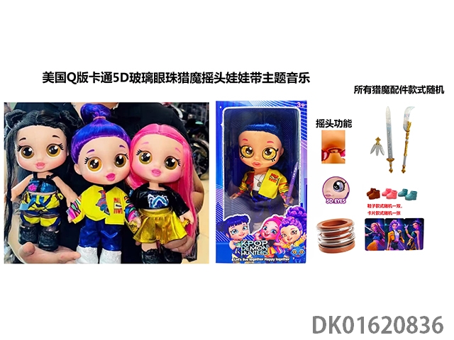 1比1美国Q版卡通5D真眼珠14寸全搪胶猎魔摇头娃娃带摇头功能带音乐主题曲带金貂卡片一张带猎魔刀,叉,剑随机一条