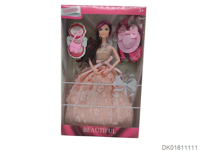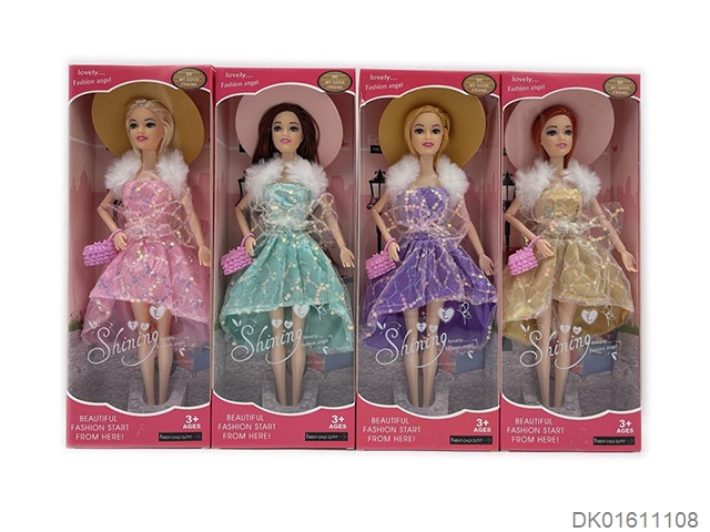 爆款热销11.5寸实身9关节时装芭比带吊裙和小帽子和小包