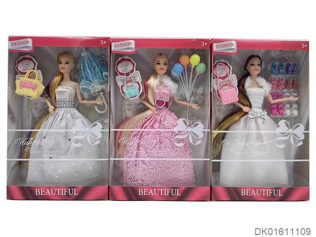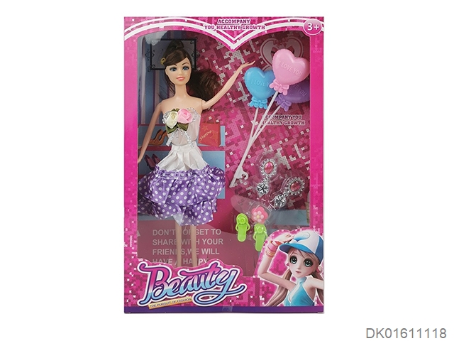 爆款热销11.5寸实身活手时装裙芭比带耳环鞋子吸塑和气球