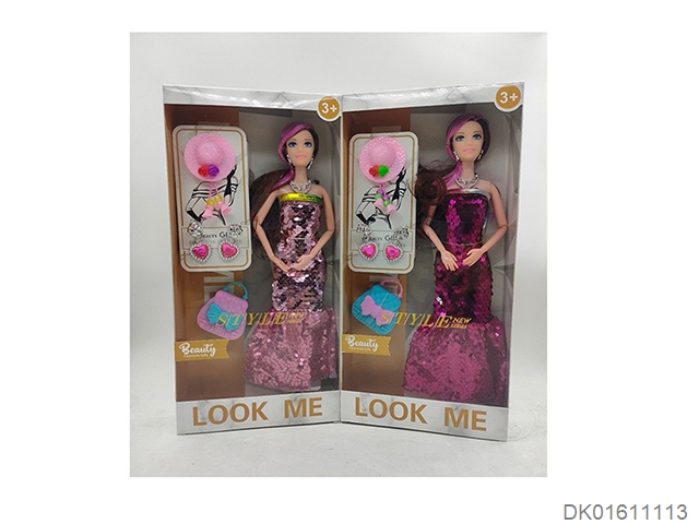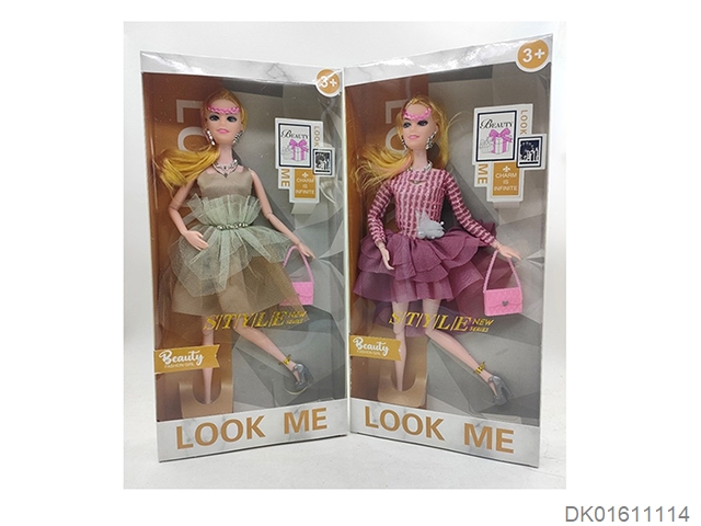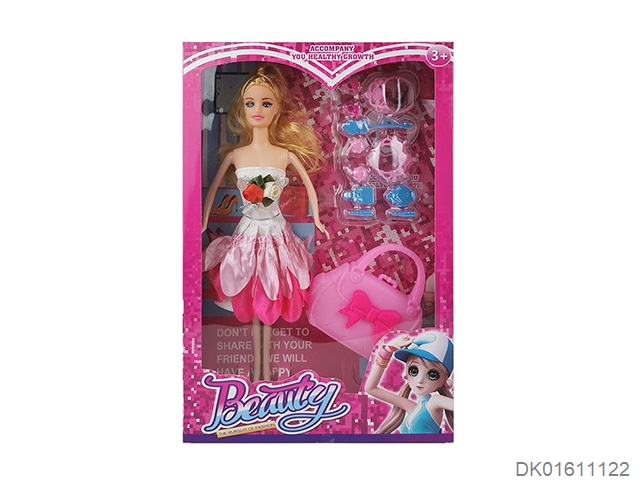 爆款热销11.5寸实身活手时装裙芭比带皇冠吸塑和大包包