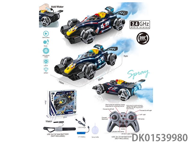 2.4G遥控F1特技漂移车带喷雾+灯光音乐/包电2遥控(手柄+手势感应手表)