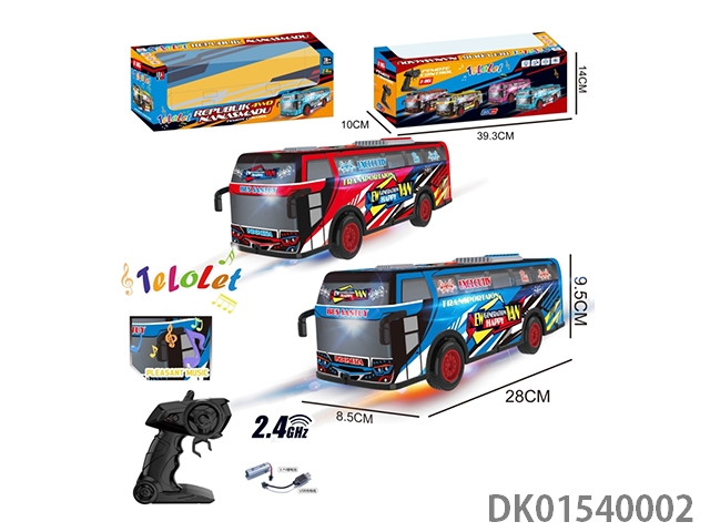 1:16灯光巴士5通遥控车2.4G带灯光/音乐/1键演示红/蓝包电