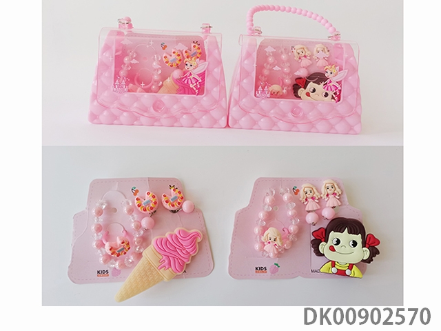 Handbag accessories set (bracelets and hairpins and earrings and rings) ice cream and girls