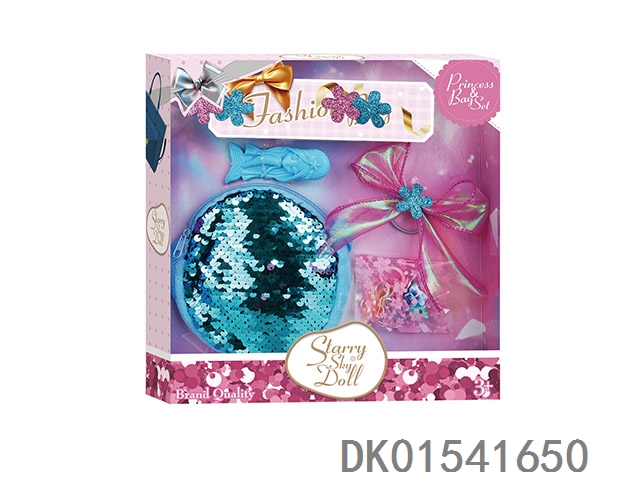 Exquisite bead (foldable) zero wallet series - comes with comb * 1 large bow tie hair elastic band * 1 girl accessory bag * 1 pack