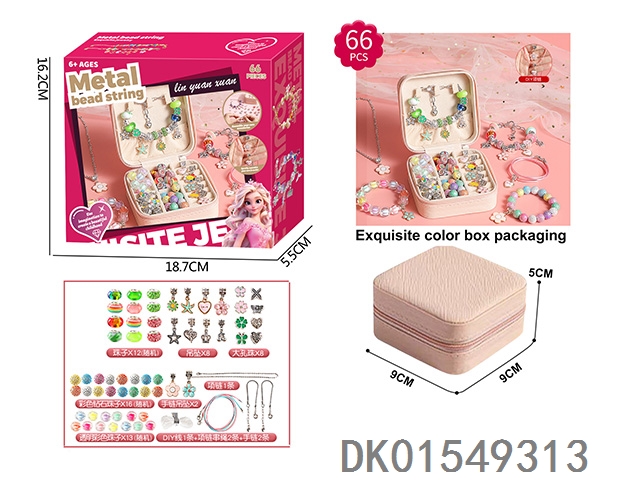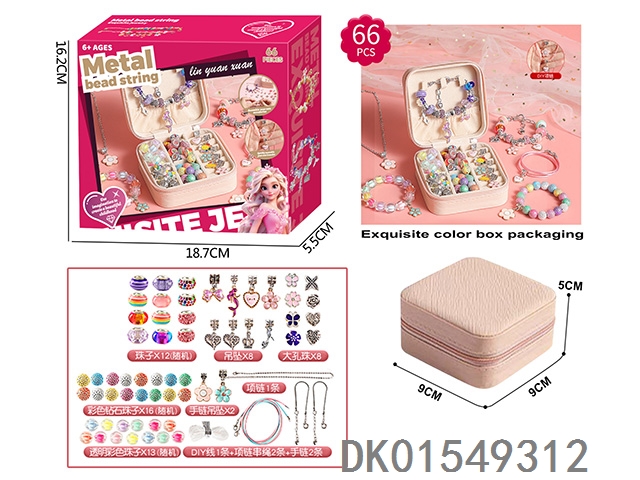 D 66 piece set of double-layer square box alloy beads and ab beads (pink and green) for girls to play house accessories toys