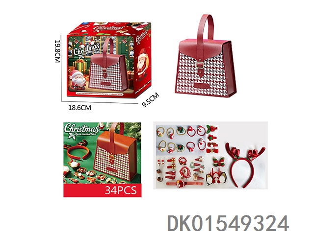 Christmas thousand bird grid trapezoidal handbag hair accessories set (33 piece set) girl’s home decoration toy