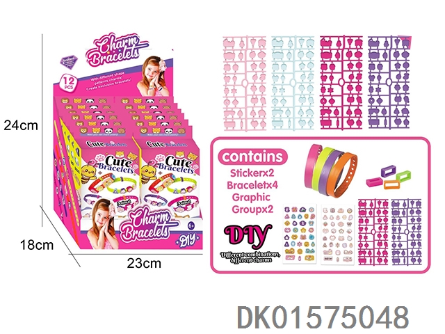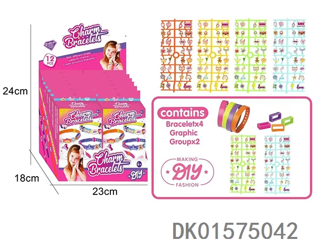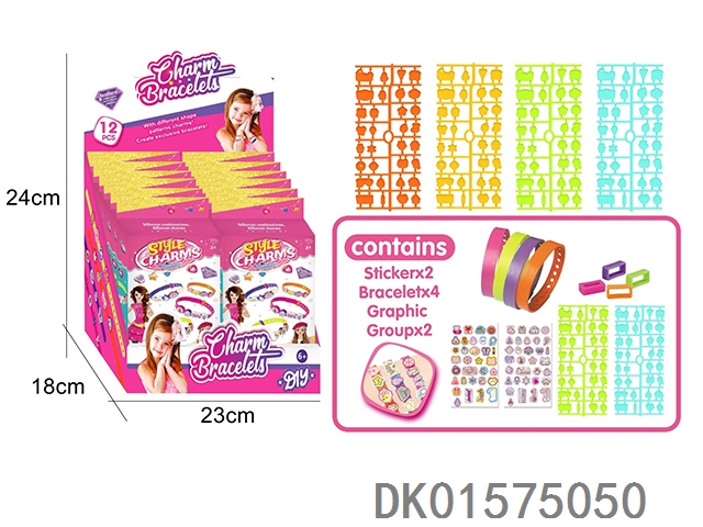 12 Diy wristbands (4 wristbands and 2 pattern stickers) 12pcs/box